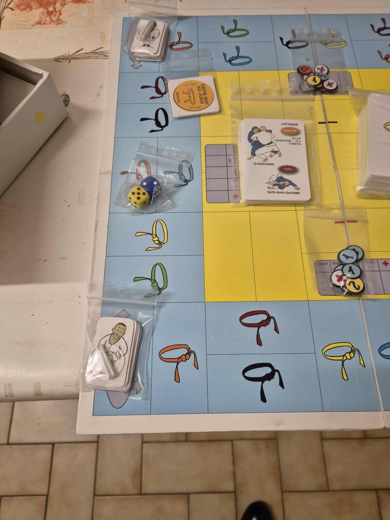 La partie se divise en 2 étapes , la première consiste à passer ses grades ( ceinture de couleurs ) et la seconde c'est ldes combats avec des cartes COMBAT !