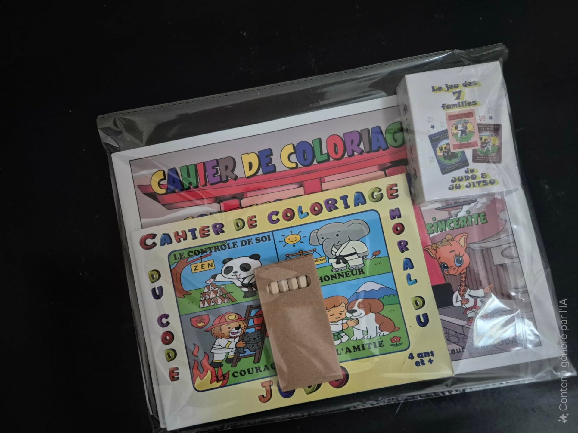 Retrouvez les magnifiques cartes des 7 familles du judo ainsi que les deux cahiers de coloriage illustrant le code moral de ce sport exceptionnel dans ce pack complet. De plus, un joli stylo de qualité vous est gracieusement offert pour chaque achat du trio rassemblé !